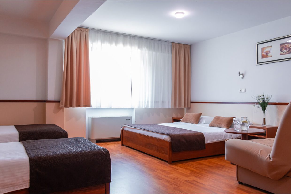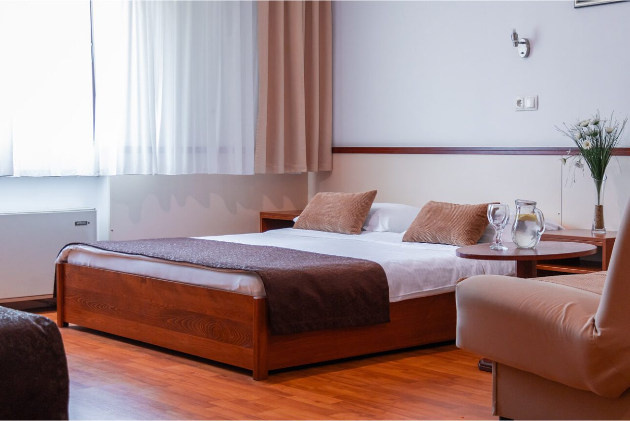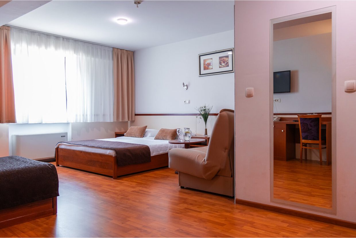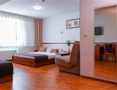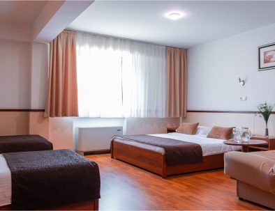 This spacious and comfortable room is perfect for families or groups. It offers a quiet environment with modern amenities, including a comfortable bed, workspace, TV, and free Wi-Fi. The room is flooded with natural light, and its design combines functionality and style, providing guests with maximum comfort. Ideal for longer stays, it includes extra features to meet the needs of the entire family or group of friends.